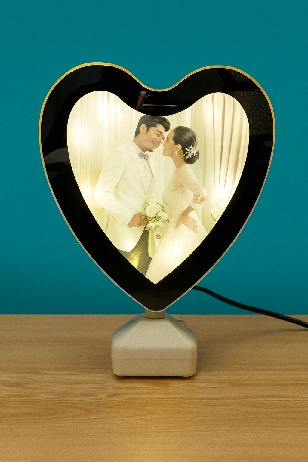 🔛 Включено с бутона – LED светлината се активира и разкрива скритата снимка зад стъклото.